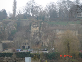 The Burgundians, the French, Spain, Austria and Germany all called Luxembourg City theirs at one time and contributed to its status as one of the mightiest emplacements in the world. The city is defended by three "layers" of battlements. The inner is fortified with bastions, the second included 15 forts and the third was composed of an outer wall containing 9 forts, all of which were built into the rock. It also has a network of 23 km of underground tunnels (the casements) and more than 40,000 sq meters of bombproof rooms cut into the rock on which the city is built! These rooms sheltered people, equipment, horses, workshops, kitchens, bakeries, etc. So a lot of what we saw were these walls, the valley, bridges over the valley, the tunnels in the rock, etc. It was all beautiful - and amazing feats of engineering!